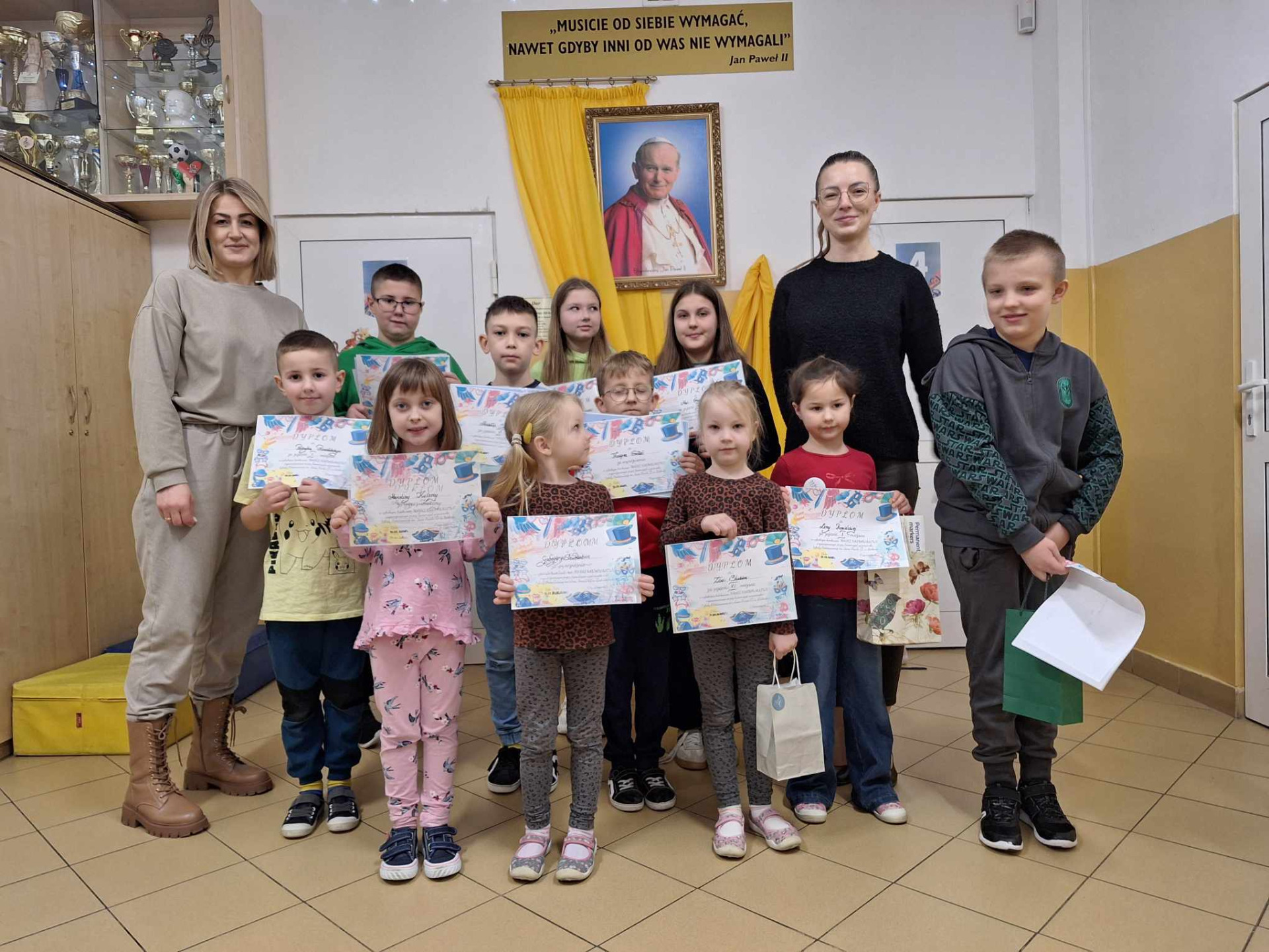 31.01.2025 r. miał miejsce w naszej szkole apel porządkowy. Pani Dyrektor podsumowała działalność naszej placówki w I półroczu. Uczniowie, którzy zyskali średnią ocen min. 4,75 , otrzymali dyplomy. W podobny sposób zostały nagrodzone dzieci ze stuprocentową lub wzorową frekwencją. Spotkanie stało się również okazją do ogłoszenia wyników konkursu na karnawałową maskę. Pedagog szkolny – pani Marta Krakowiecka- przypomniała wszystkim o konieczności zachowania ostrożności podczas zabaw w trakcie ferii zimowych.