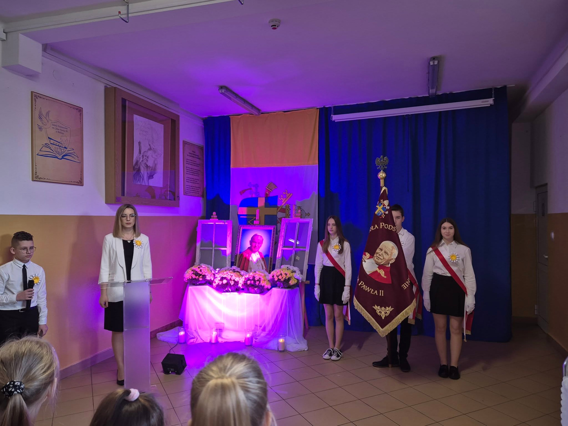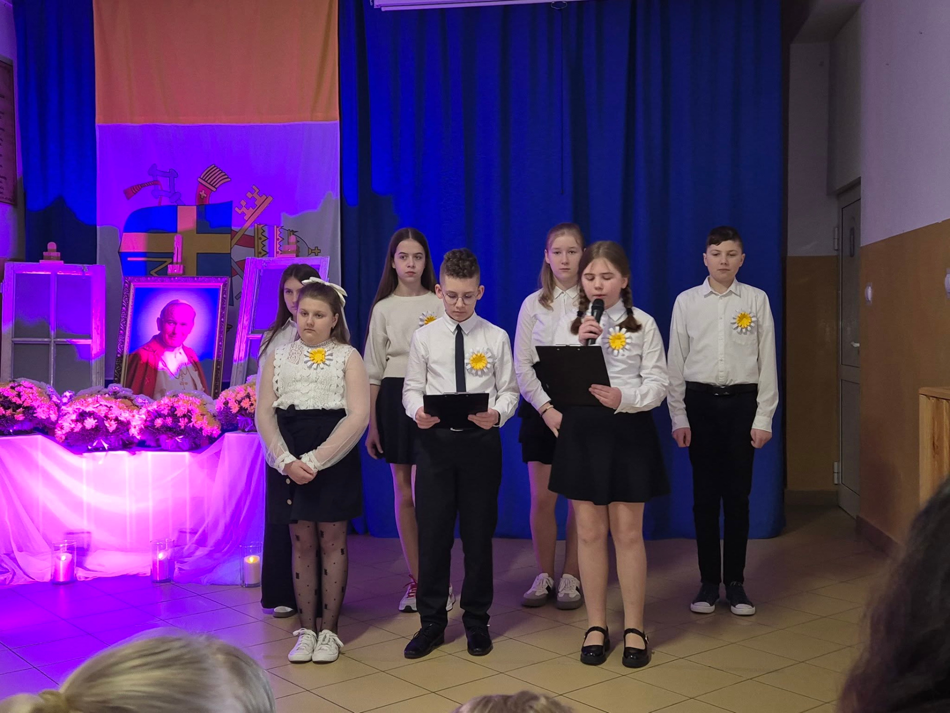 2 kwietnia obchodziliśmy dwudziestą rocznicę śmierci Patrona naszej szkoły – Jana Pawła II. Było to dla naszej społeczności bardzo ważne i podniosłe wydarzenie. Postanowiliśmy uczcić ten dzień akademią, w której zaprezentowali się uczniowie klasy II, III, VI, VI i VIII. Tematyka montażu słowno-muzycznego nawiązywała do biografii i twórczości Karola Wojtyły.