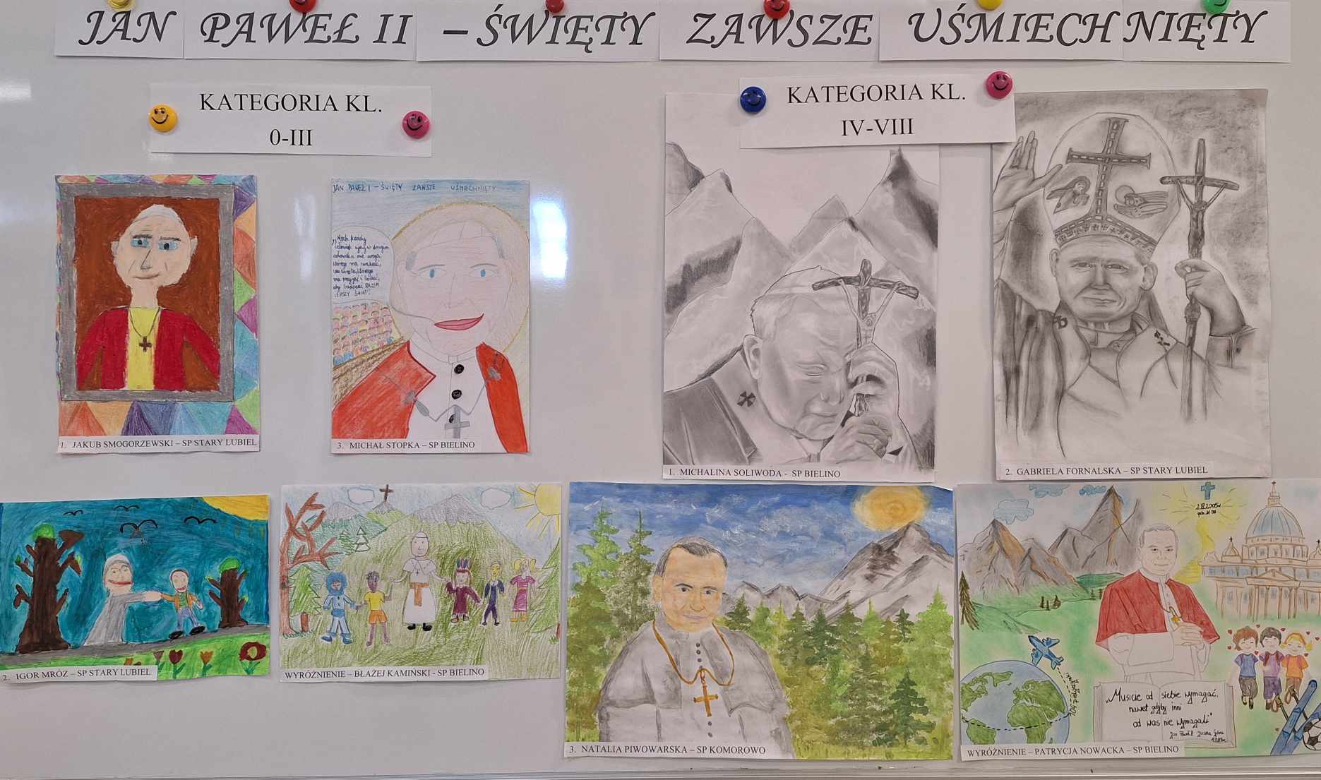 W GMINNYM KONKURSIE PLASTYCZNYM „JAN PAWEŁ II – ŚWIĘTY ZAWSZE UŚMIECHNIĘTY” nagrodzeni zostali: