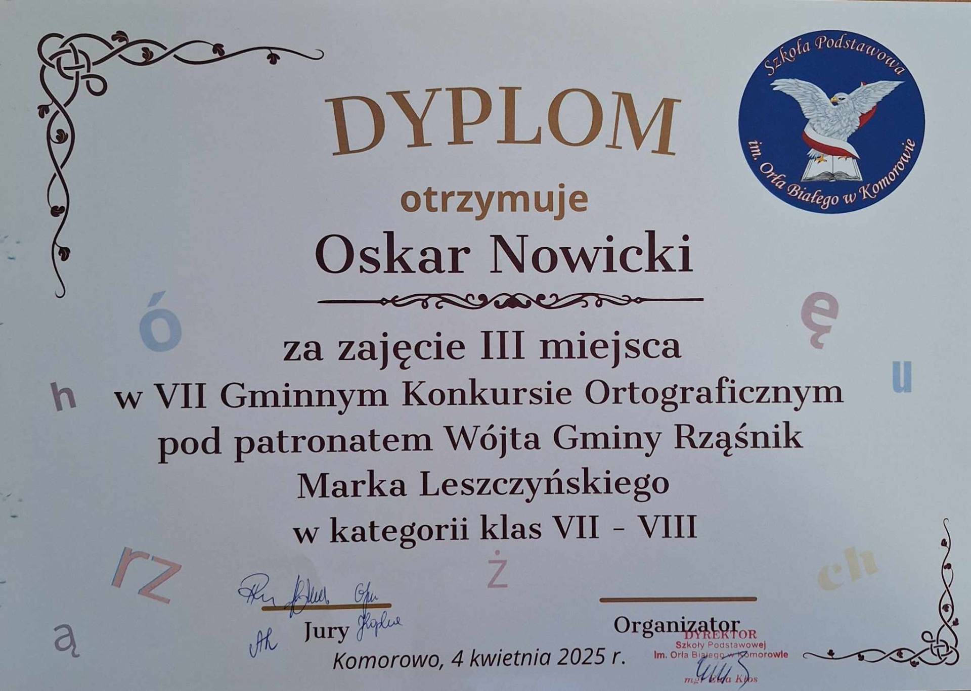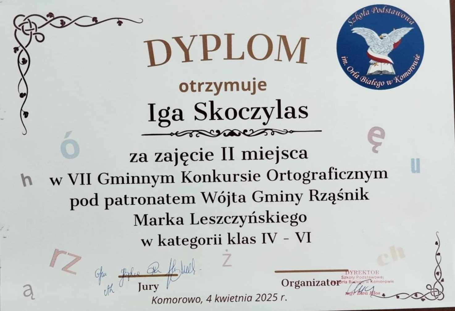 4 kwietnia nasi uczniowie reprezentowali naszą szkołę podczas VII Gminnego Konkursu Ortograficznego. Gratulujemy Idze Skoczylas i Oskarowi Nowickiemu.