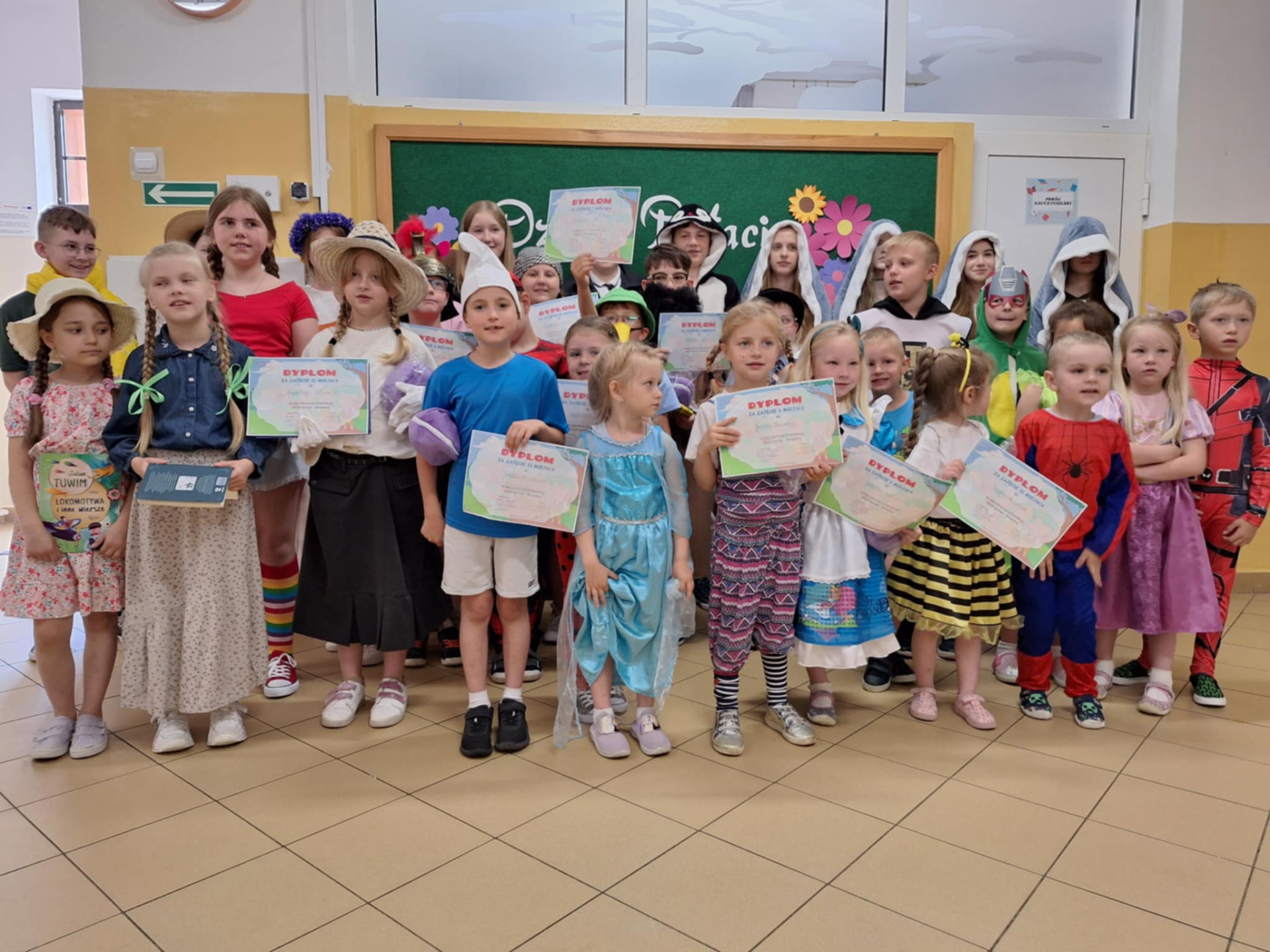 18 czerwca miał miejsce w naszej szkole Dzień Postaci z Literatury. Zadaniem uczniów było przebranie się za ulubione postacie. Uczniowie klas IV-VIII wzięli udział w konkursie z języka polskiego. Najlepiej z zadaniami poradzili sobie: Maja Sieńkowska, Igor Melion i Szymon Rosiński. Dzieci z oddziały przedszkolnego i młodsi uczniowie wzięli udział w konkursie na najpiękniejsze przebranie. Nagrodzeni zostali: Joanna Orłowska, Gabriela Skubisz, Sandra Kasjaniuk, Blanka Wróbel, Miłosz Godlewski, Jakub Wojtasiak, Kacper Gołaś, Magdalena Orłowska, Michał Stopka, Zuzanna Dziadak.