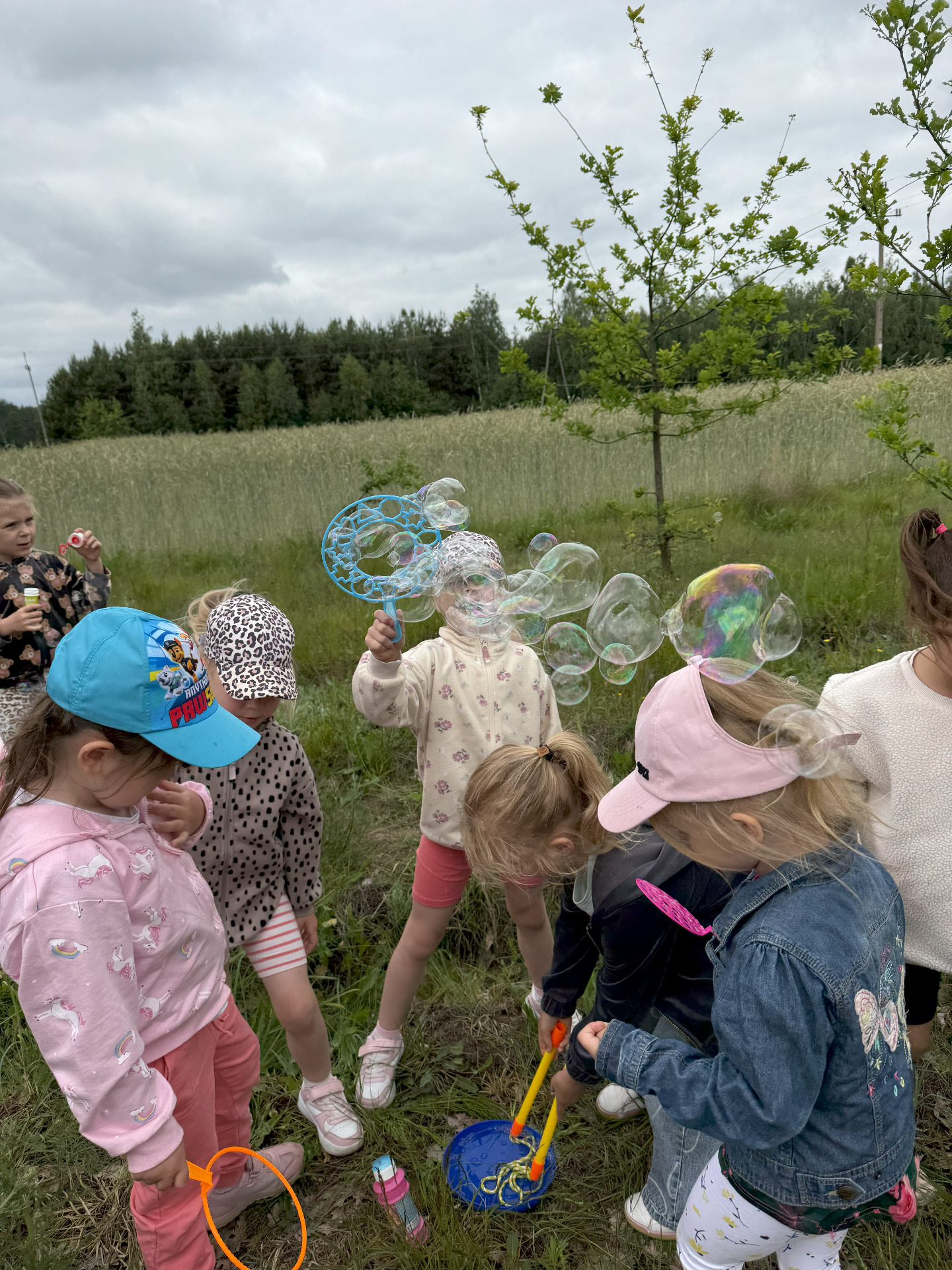 Podczas wycieczki nie zabrakło czasu na obserwację przyrody oraz różne gry i zabawy. Dzieci bawiły się z bańkami mydlanymi i cieszyły wspólnym czasem na świeżym powietrzu.