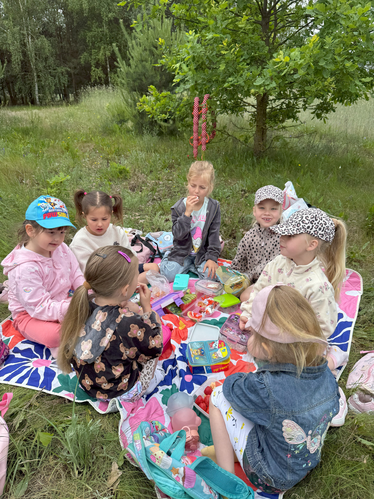 W piękny, słoneczny dzień grupa naszych przedszkolaków wybrała się na piknik na polanę obok pobliskiego lasu. Każde dziecko przyniosło ze sobą pyszne jedzenie przygotowane przez rodziców.