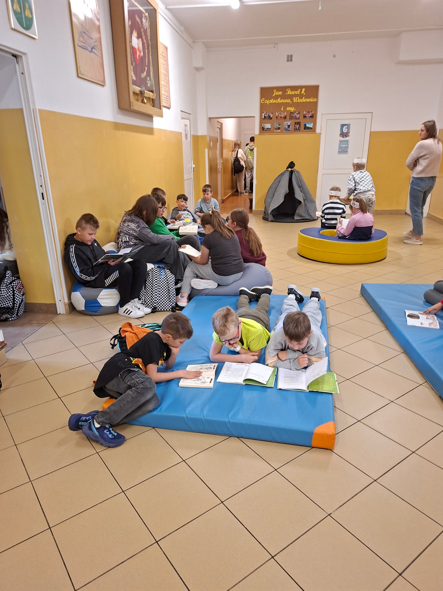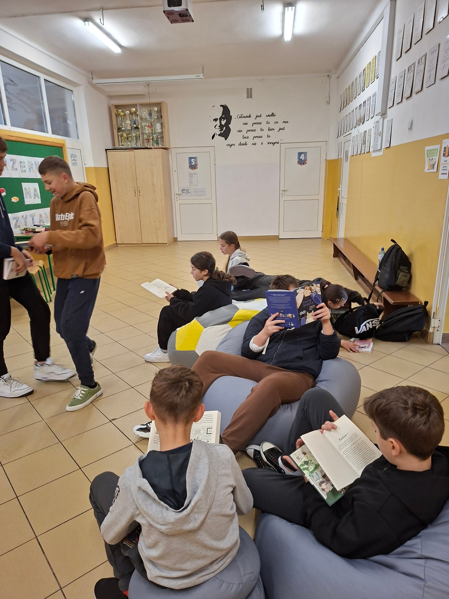 3 października nasza szkoła wzięła udział w ogólnopolskiej akcji „Przerwa na czytanie”. Ta akcja to inspirująca inicjatywa, która zachęca młodych ludzi do eksplorowania świata książek w październiku, miesiącu bibliotek szkolnych. Celem jest nie tylko promowanie nawyku czytania, ale również integracja społeczności szkolnej poprzez wspólne lektury, zwrócenie uwagi uczniów na czytanie jako atrakcyjną formę spędzania czasu wolnego w szkole oraz zachęcenie uczniów do sięgania po książkę w każdej sytuacji i w każdym miejscu. Wszyscy uczniowie obecni tego dnia w szkole oraz nauczyciele, czytali na przerwie wybrane przez siebie ulubione książki z biblioteki, natomiast dzieci z oddziału przedszkolnego utworzyły w swojej sali strefę czytania, gdzie z pomocą nauczyciela, włączyli się w naszą akcję. Dziękujemy wszystkim, którzy wzięli udział w akcji zorganizowanej przez bibliotekę szkolną. Warto czytać w każdej wolnej chwili!