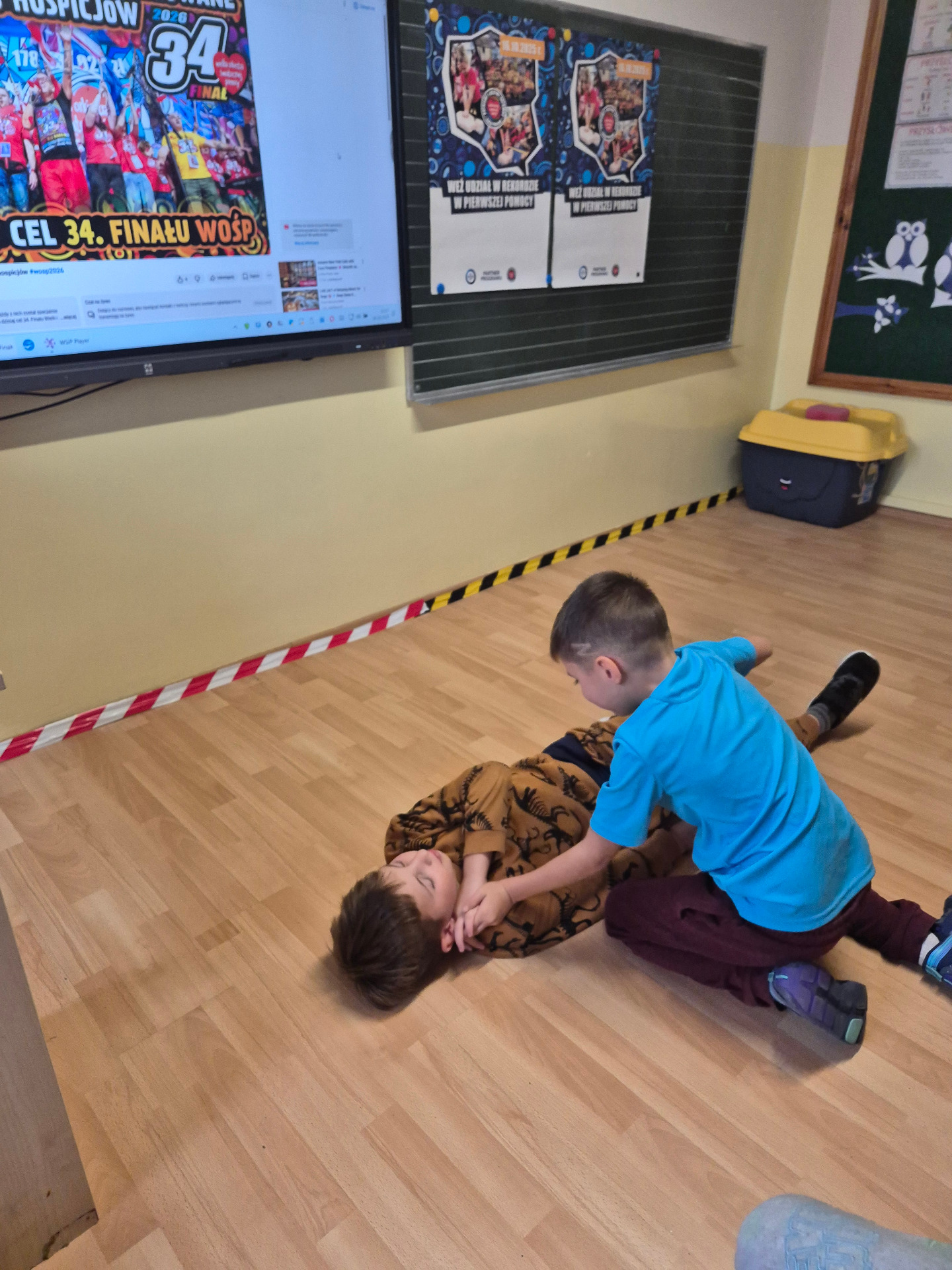 Program ma na celu naukę podstaw udzielania pierwszej pomocy oraz bezpiecznego reagowania w sytuacjach zagrożenia życia. Podczas przeprowadzonych zajęć dzieci dowiedziały się, jak prawidłowo wezwać pomoc i udzielić wsparcia poszkodowanemu. Uczniowie ćwiczyli praktyczne umiejętności, takie jak sprawdzanie przytomności, układanie poszkodowanego w pozycji bocznej bezpiecznej czy wykonywanie resuscytacji krążeniowo – oddechowej.