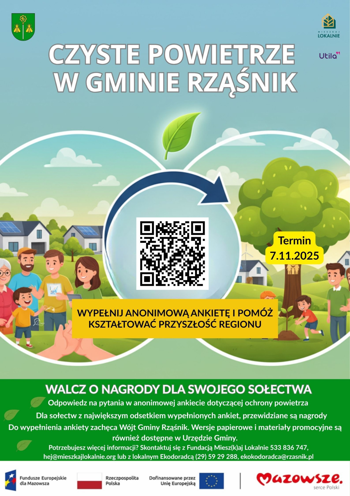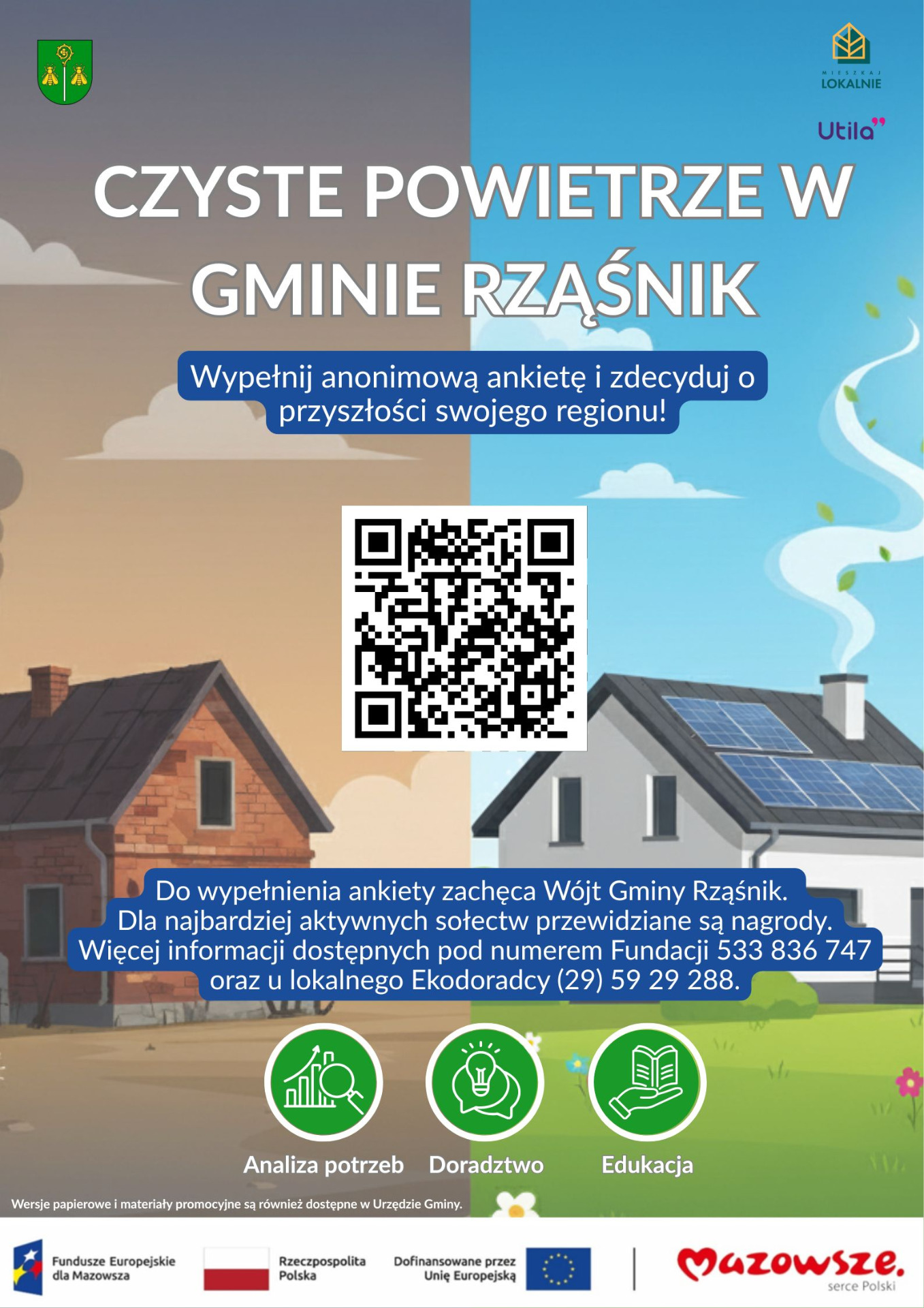 Pomocy w wypełnieniu ankiety udziela Fundacja Miesz(k)aj Lokalnie (533 836 747, hej@mieszkajlokalnie.org) lub Ekodoradca w Urzędzie Gminy Rząśnik (29-59-29-288 lub 516-039-327)