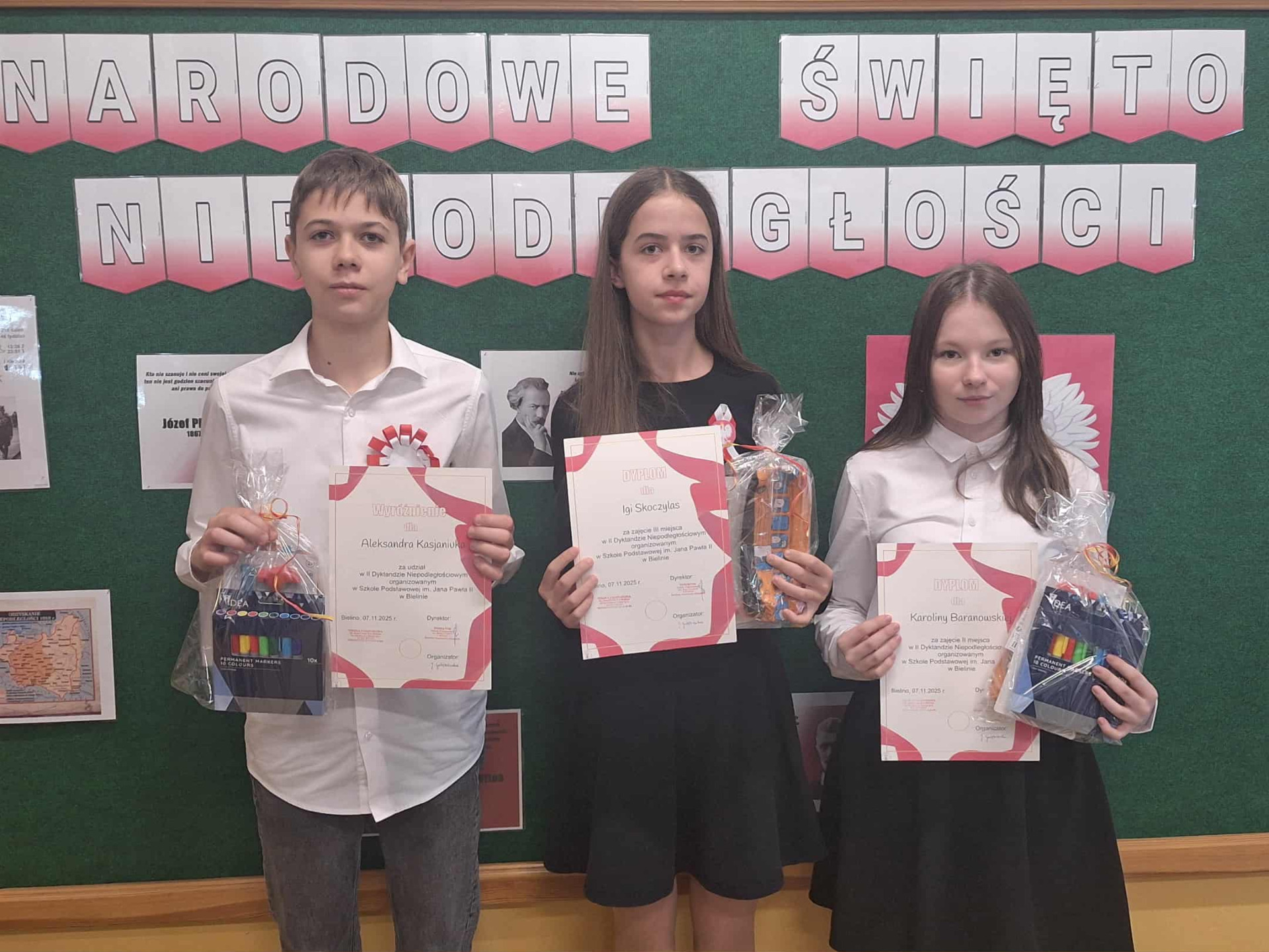 3 listopada 2025 r. w naszej szkole odbyło się Dyktando Niepodległościowe, które stało się okazją do uczczenia rocznicy odzyskania przez Polskę niepodległości oraz sprawdzenia umiejętności ortograficznych i interpunkcyjnych uczniów.