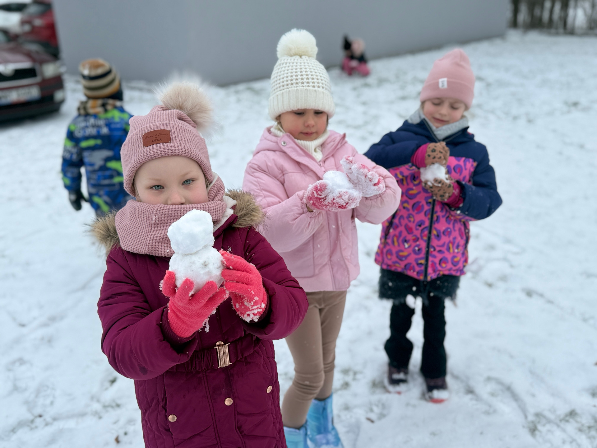 Pierwszy śnieg sprawił naszym dzieciom ogromną radość! Podczas pobytu na świeżym powietrzu dzieci z entuzjazmem odkrywały uroki zimy. Lepienie bałwana, tworzenie śniegowych kulek, malowanie na śniegu patyczkami czy robienie „aniołków” wywołało mnóstwo szerokich uśmiechów. Mamy nadzieję, że zima pozwoli nam jeszcze cieszyć się tak pięknymi chwilami!
