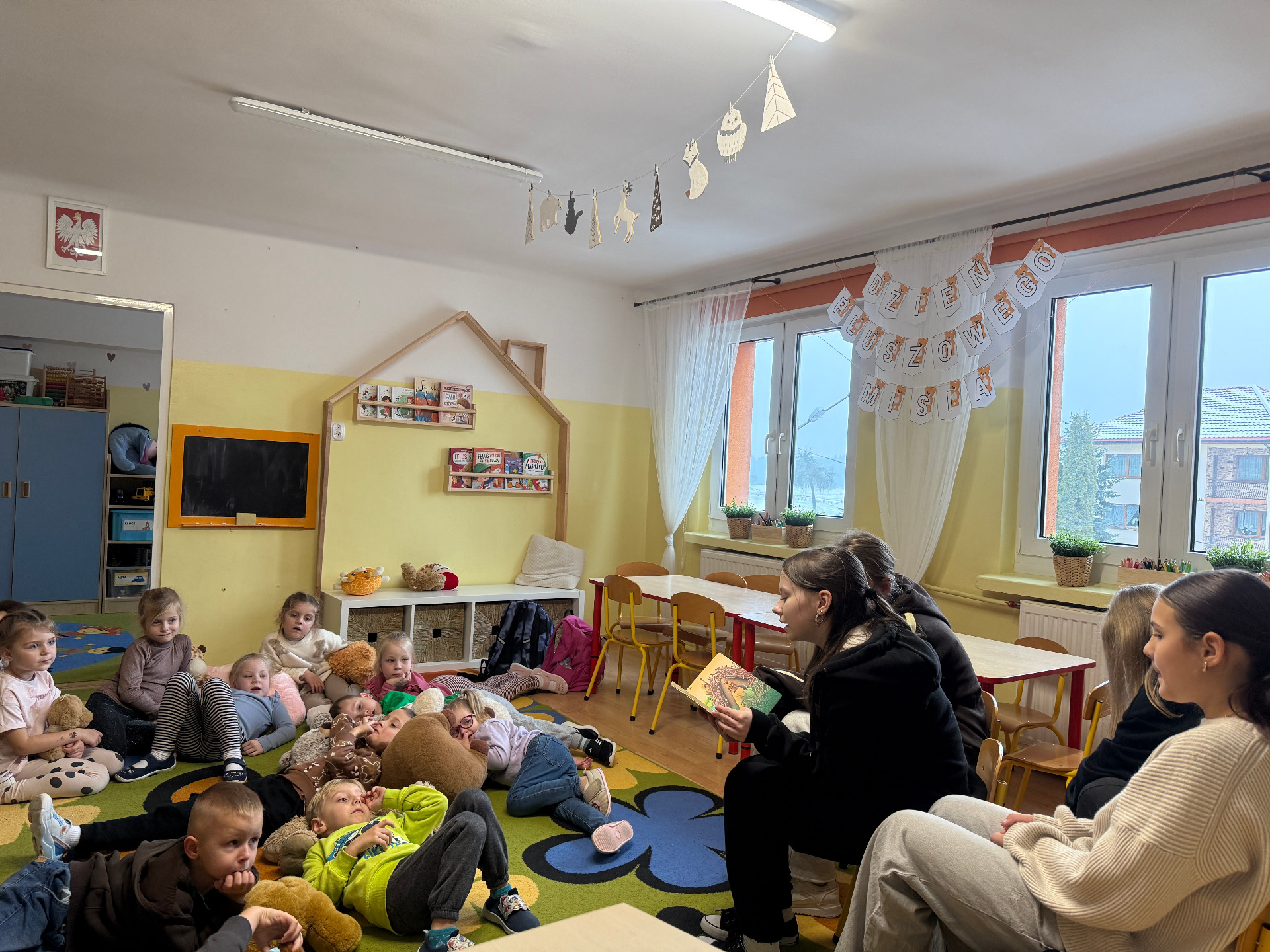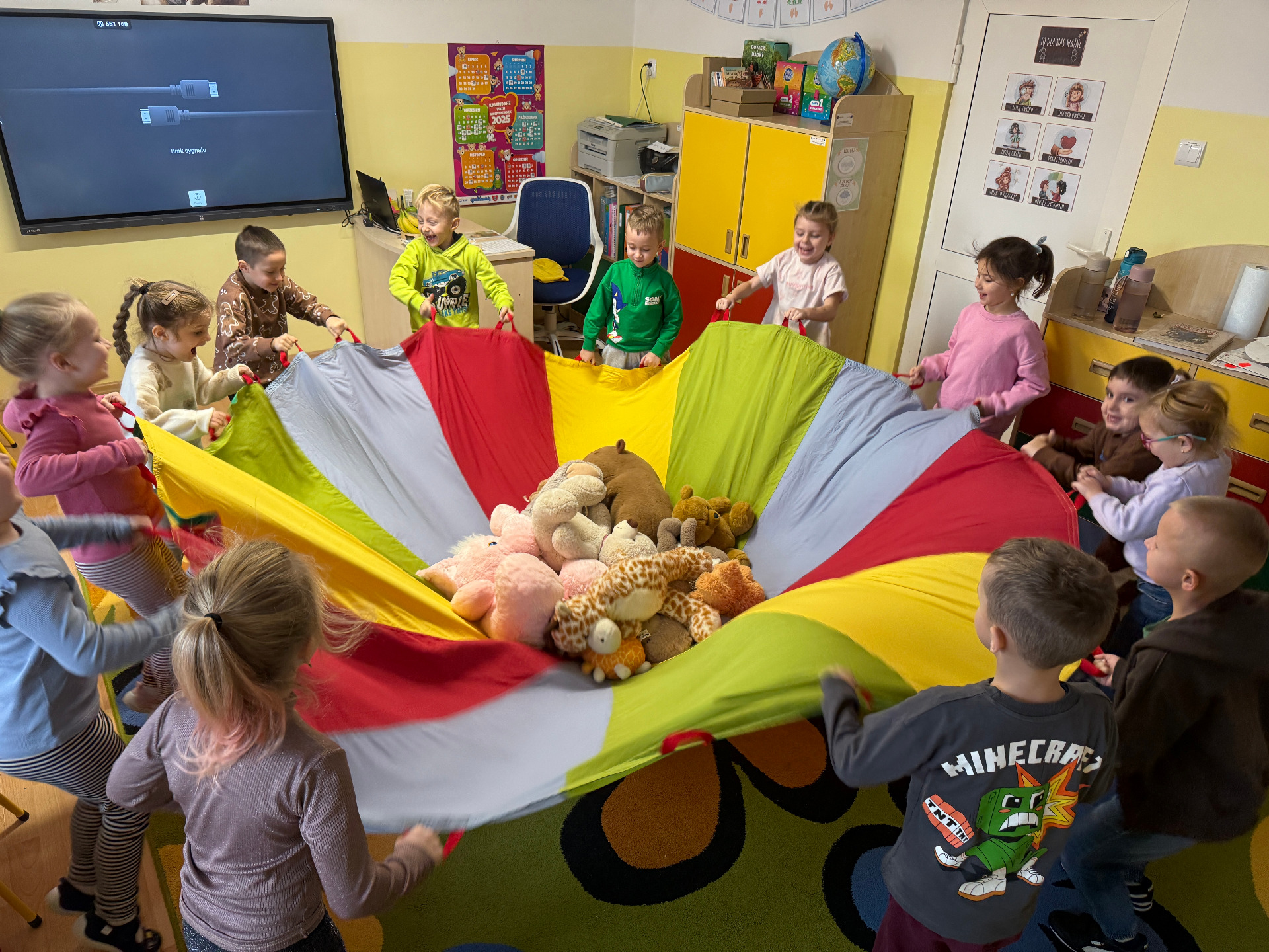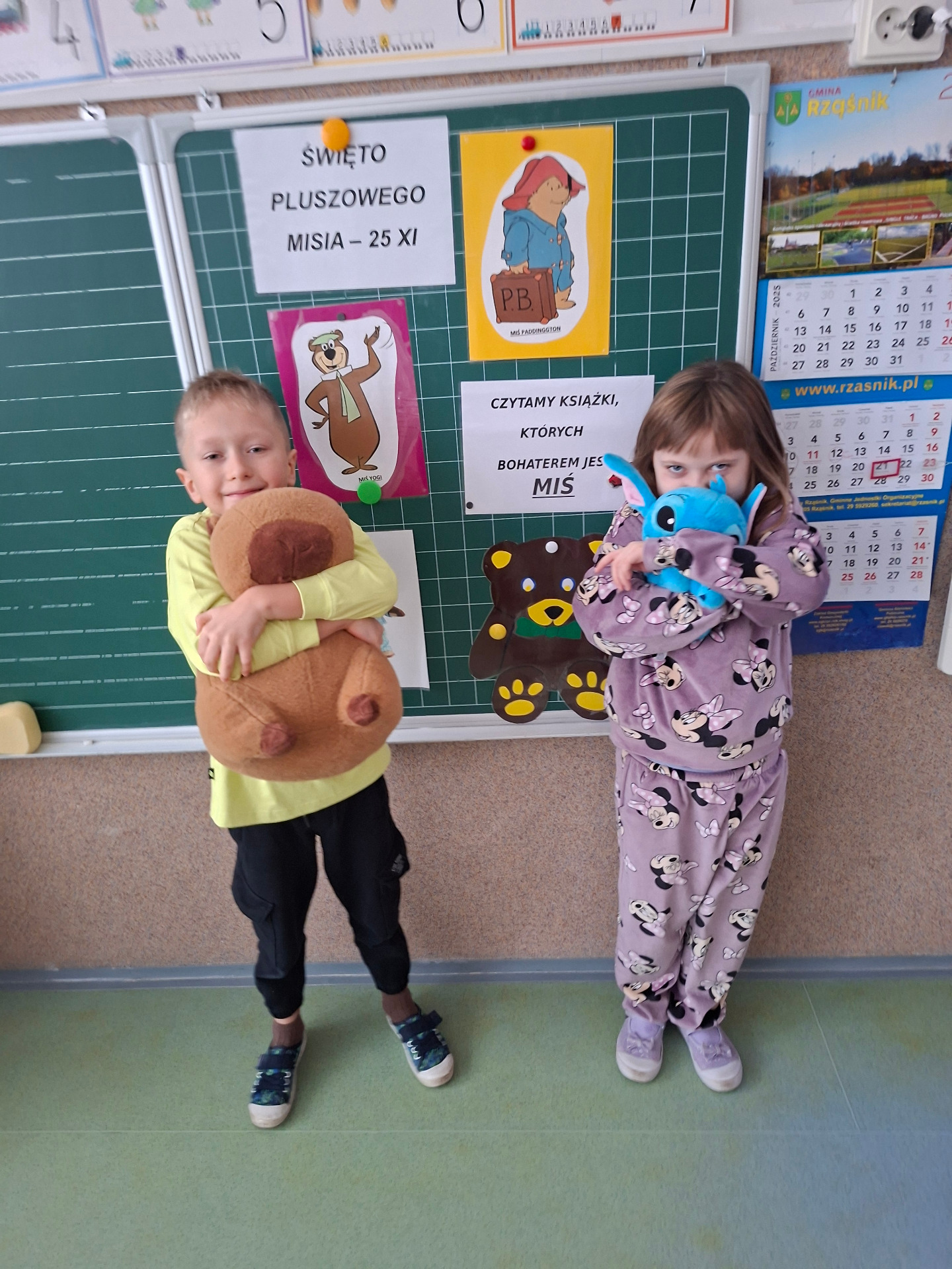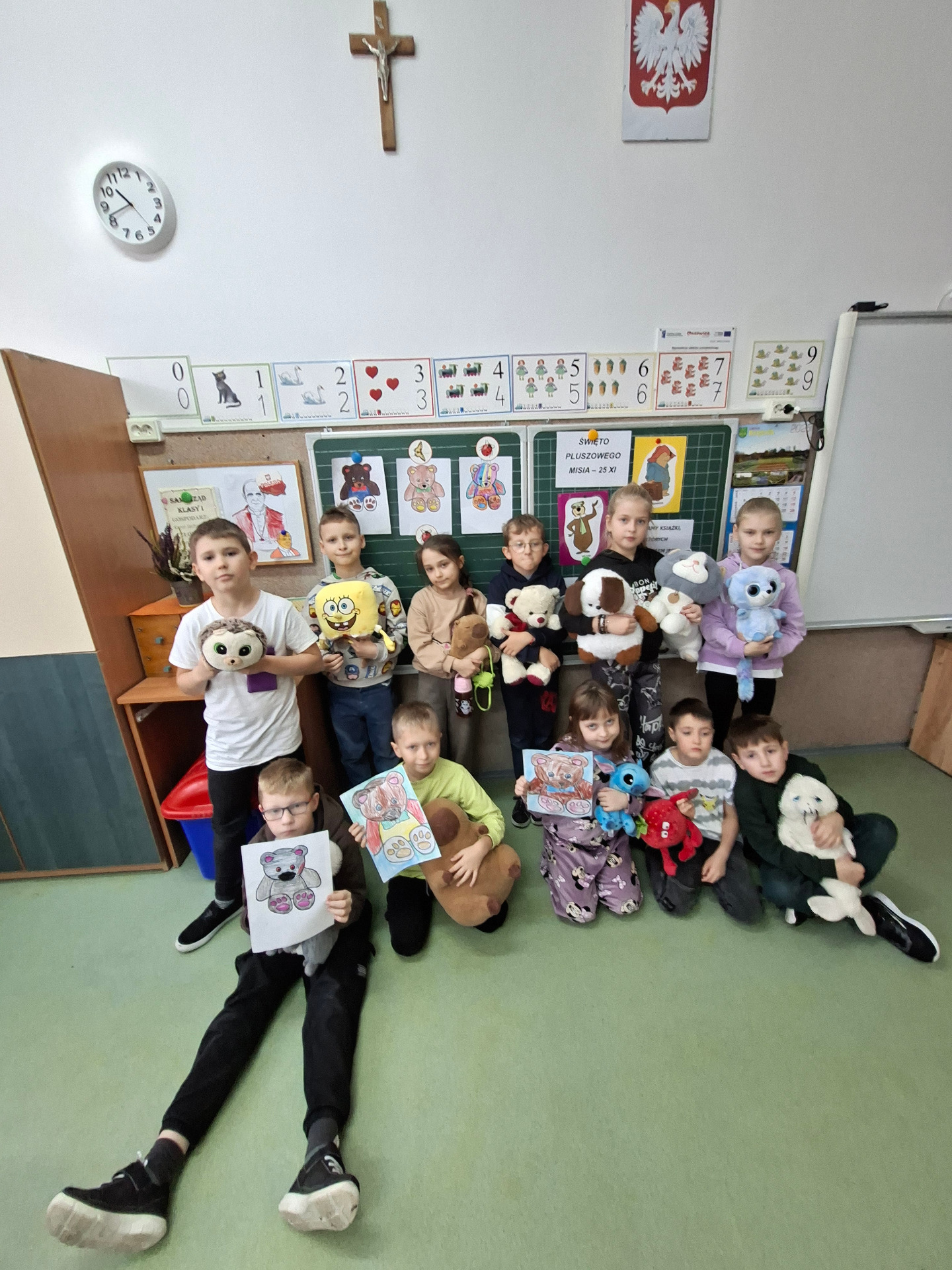 25 października 2025 r. świętowaliśmy w szkole Dzień Pluszowego Misia. Dzieci przyniosły swoje ukochane pluszaki i opowiadały o nich kolegom i koleżankom. Przedszkolaki wspólnie bawiły się z misiami na chuście animacyjnej oraz podczas zabaw ruchowych przy muzyce. Dziewczynki z klas starszych czytały młodszym dzieciom książeczki o misiach, co bardzo im się podobało. Poznaliśmy też historię powstania pluszowego misia, układając ją z ilustracji w odpowiedniej kolejności. Nie zabrakło słodkiej niespodzianki – gofry ozdabiane bananami, które zamieniły się w urocze „misiowe buzie”. Na zakończenie dnia dzieci wykonały drewnianego misia ze sklejki, malując go i ozdabiając według własnego pomysłu. Świętowali ten dzień również uczniowie klas I-III. Wykazali się kreatywnością i zrobili misie z rolki papieru, oglądali też bajkę „Kubuś Puchatek i Przyjaciele” oraz kolorowali obrazki z misiami. Pierwszaki wysłuchali fragmentu książki „Księga dżungli”, poznali przygody misia Baloo. Poznali także historię powstania tego Święta.