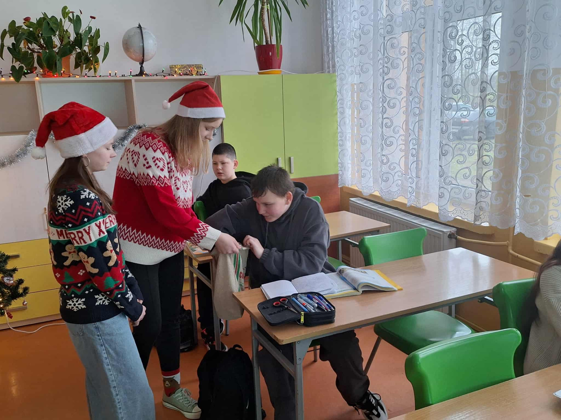 Dzieci ze starszych klas również nie mogły narzekać na brak atrakcji — nauczyciel języka polskiego zadbał o to, aby one także otrzymały zestawy kreatywnych zadań związanych z mikołajkami. Uczniowie mogli wykazać się pomysłowością, wiedzą i poczuciem humoru.