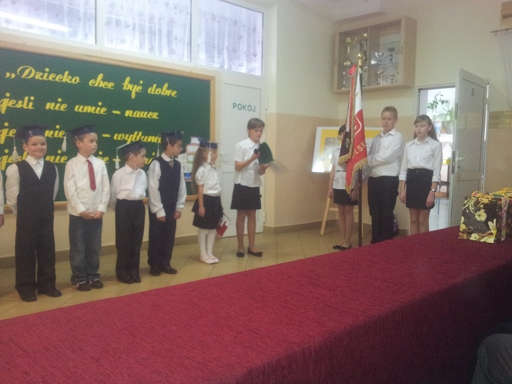 Aktu pasowania dokonała Pani Dyrektor Maria Deptuła. Uczniowie klasy pierwszej zobowiązali się do pilnej nauki, dbania o dobre imię szkoły, szacunku do nauczycieli i miłości Ojczyzny.